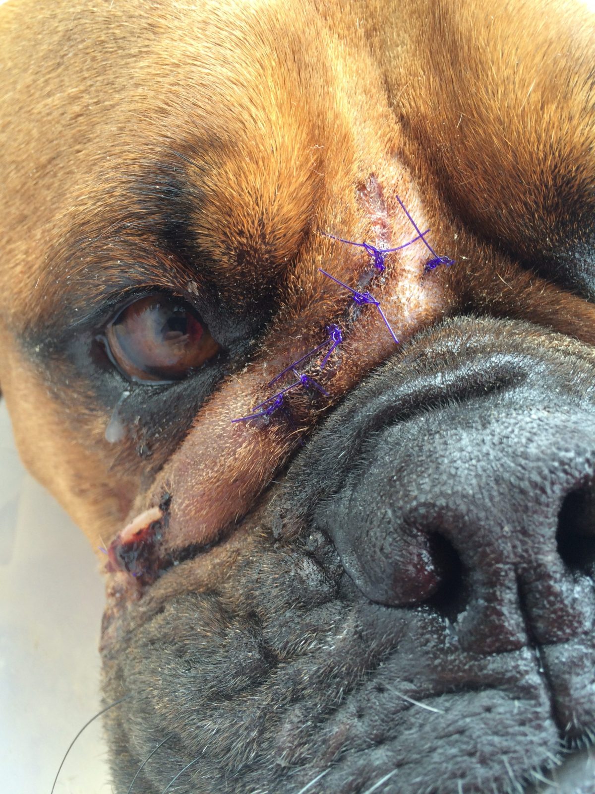 Puncture wounds can happen just from walking a dog down the street as the picture of Phoebe shows above. They can happen over toys in your own house, or they can even happen when dogs are playing and one gets the other just at the wrong angle.