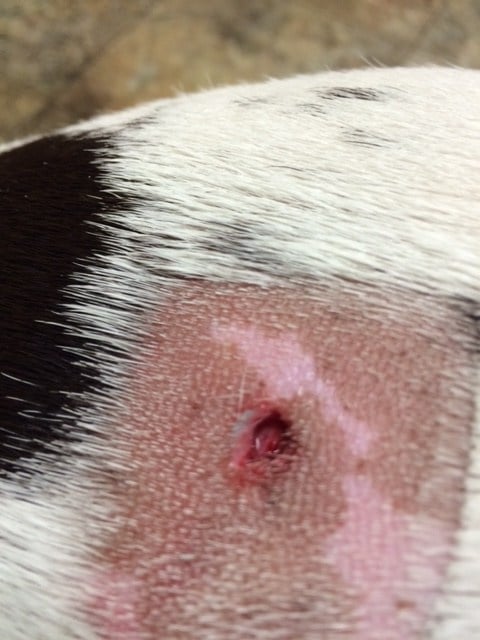 Puncture wound my employee found on a client of ours after he was in a brief altercation with another dog